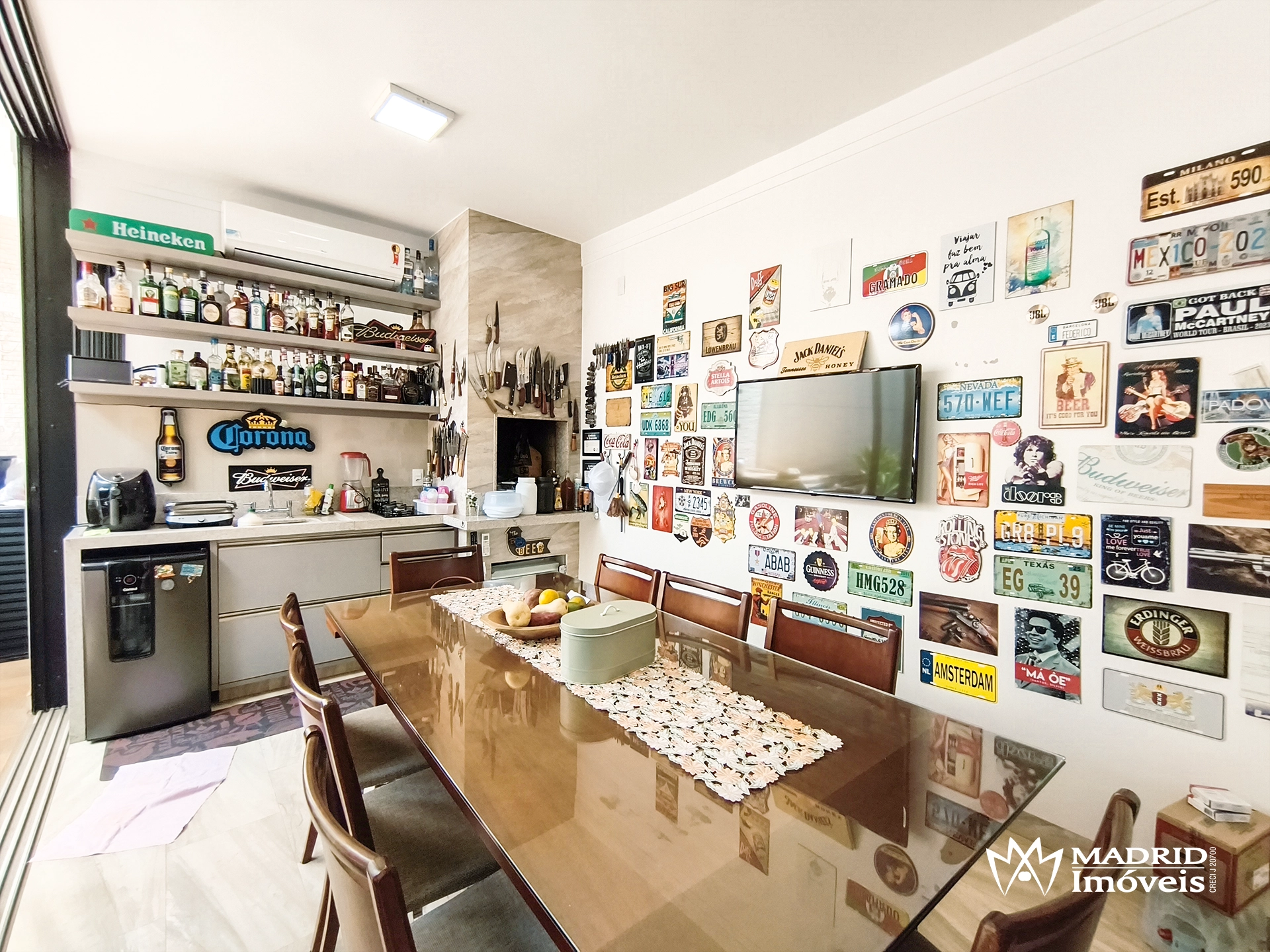 🔹 Área gourmet com churrasqueira fechada com blindex
